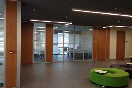 MBD 70 modüler bölme duvar sistemi, Expanded (Mesh) metal asma tavan sistemi, Owa Premium Bolero Microlook taşyünü asma tavan sistemi, alüminyum ayarlı kasalı kapılar, lumuner led aydinlatma Tile Zone 48S, Lumuner led aydinlatma Box Line 40.